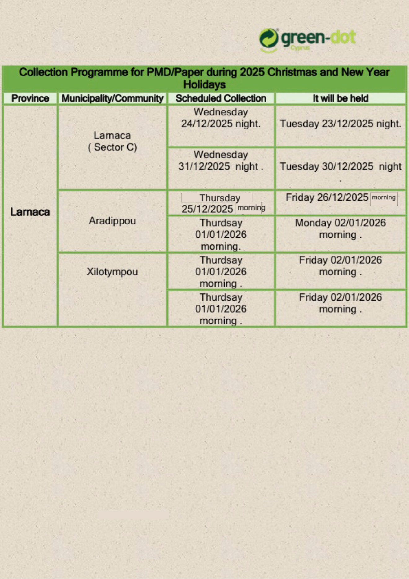 Recycling collection Programme for the Christmas Period.